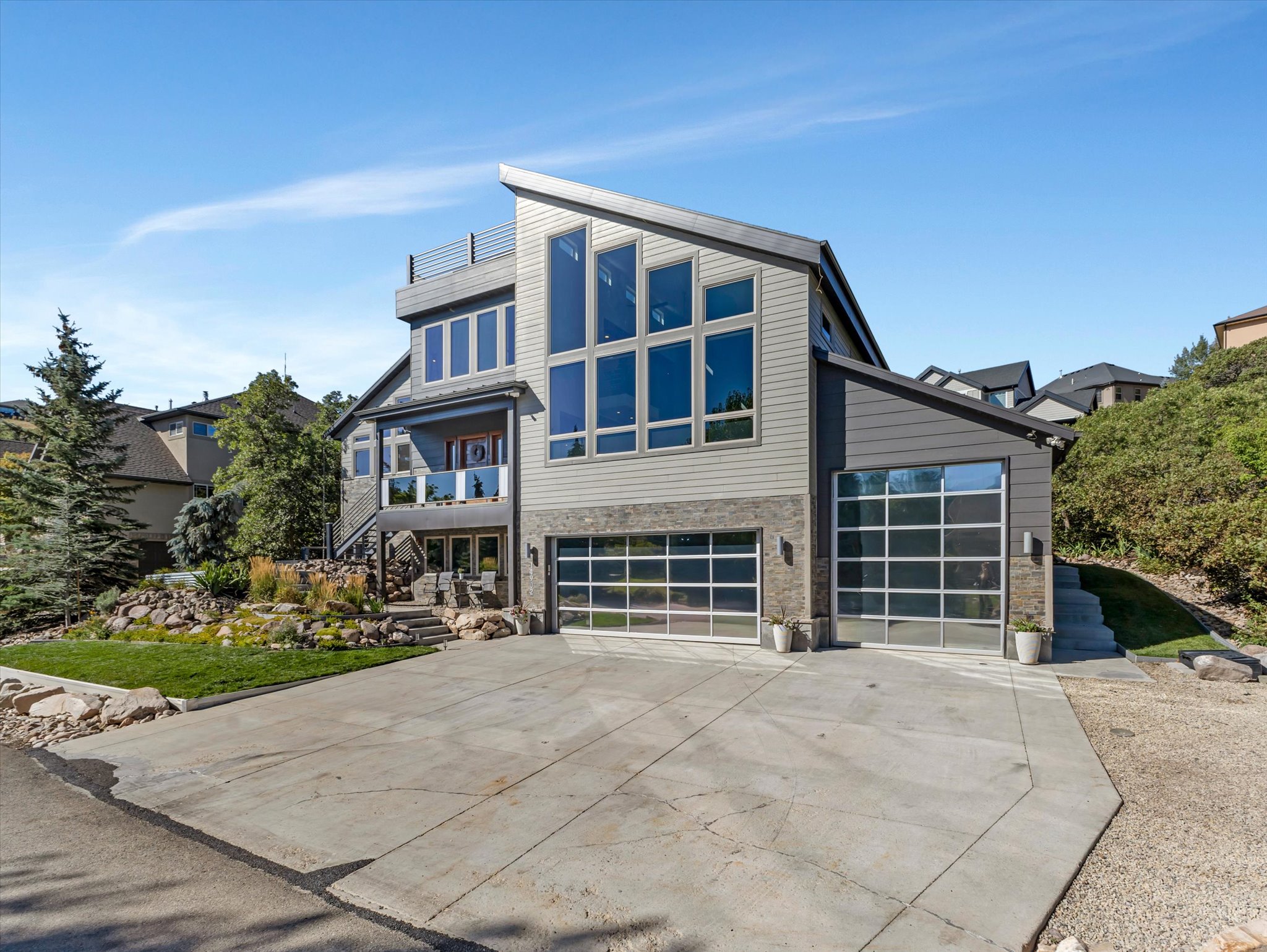In a sea of sameness, some homes rise above the rest and stand out as truly unique. While sometimes unique can mean quirky, there are rare and exceptional homes where unique means something special, something extraordinary, and something truly premium. This is that home. Clean lines, bold architecture, and an impeccable layout elevate this home to a whole new tier. Set in SunCrest, the modern design meets the mountain and something about that juxtaposition just works. Step inside and you are immediately met with soaring 26-foot ceilings (you read that right), a floating steel staircase, and windows that frame views so striking they feel like artwork.