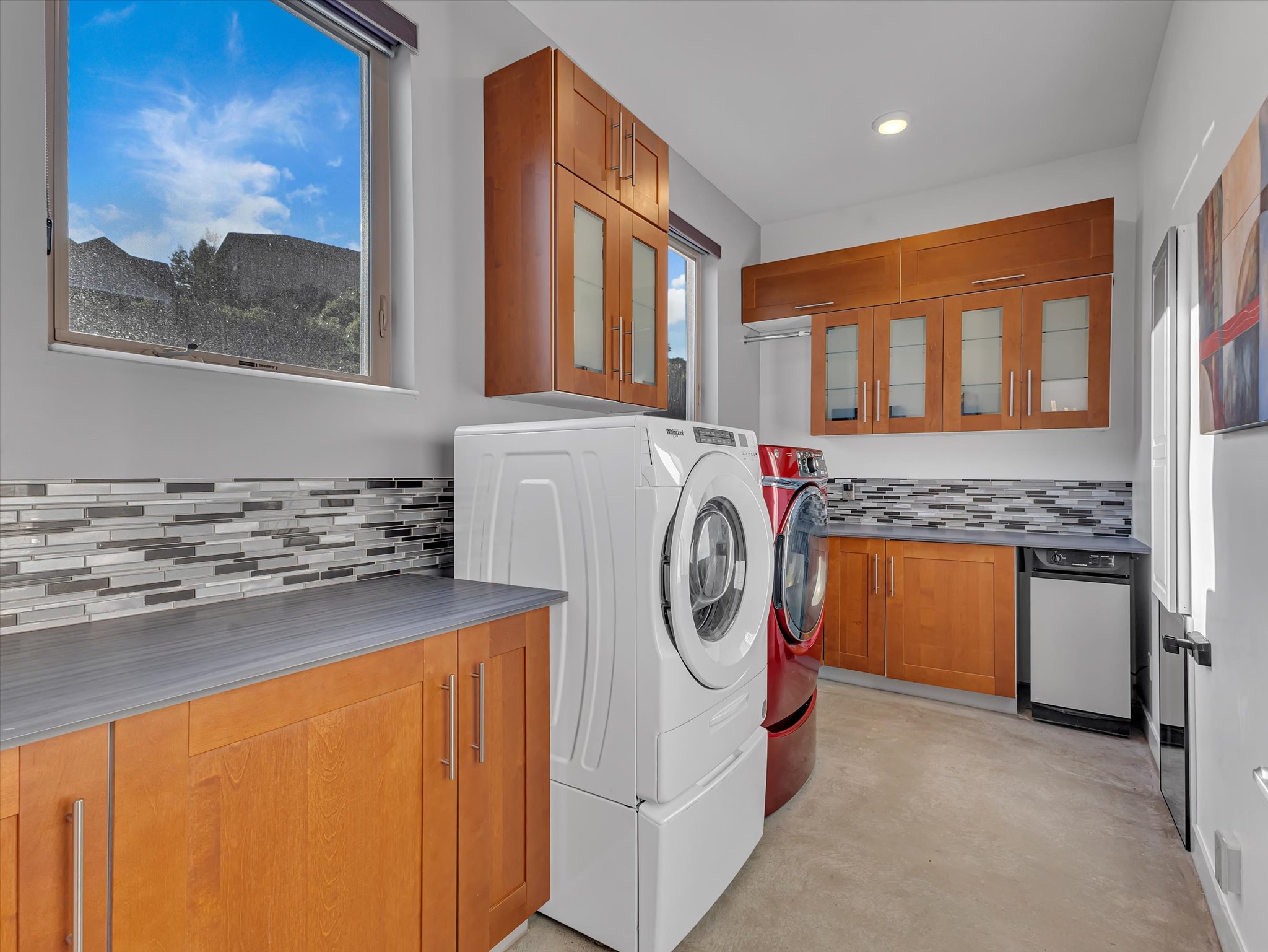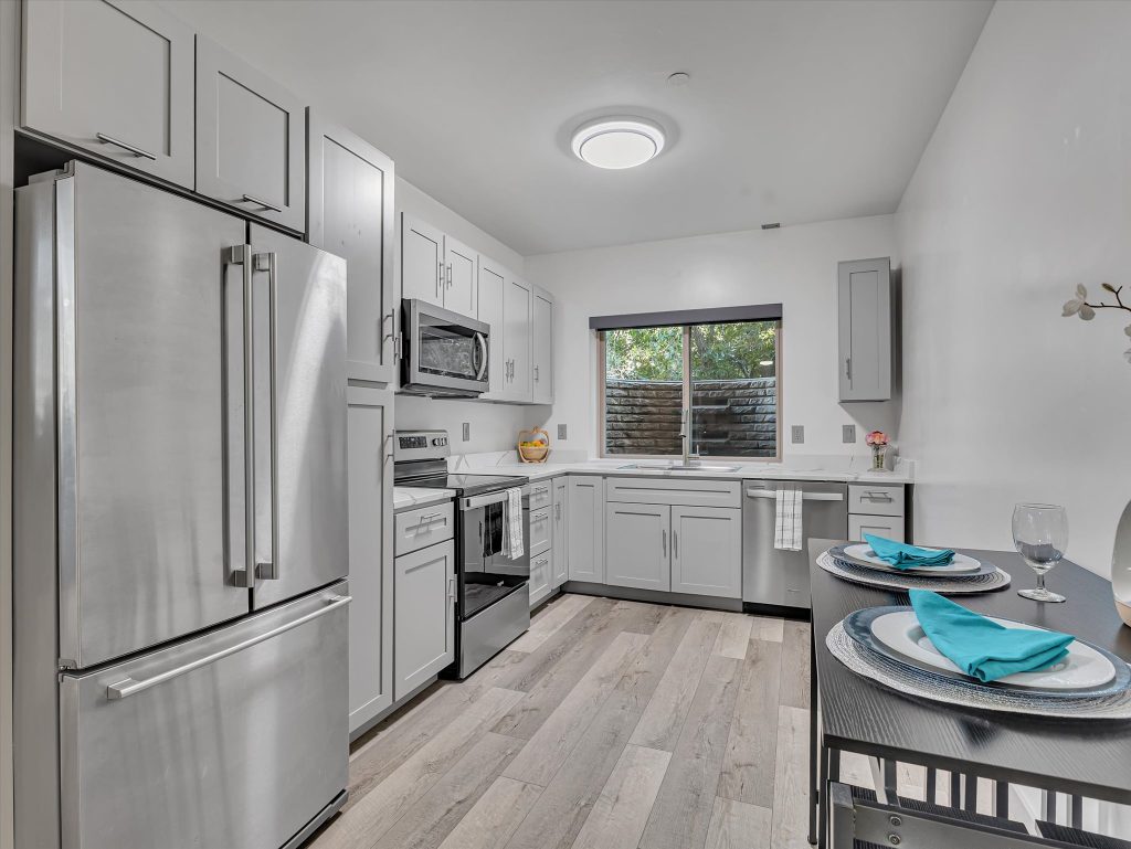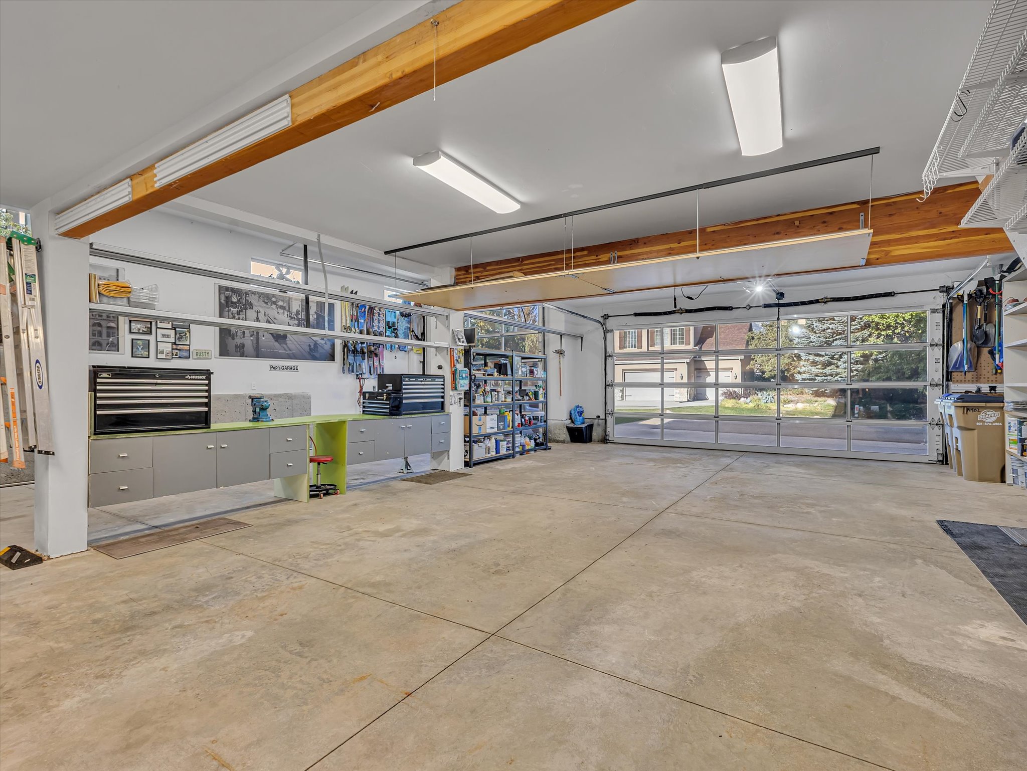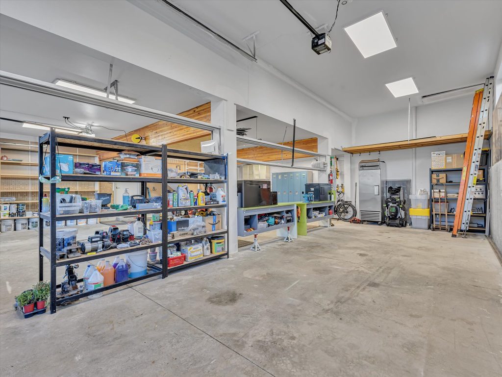 Downstairs, the ADU tells its own story. Two bedrooms, a bathroom, a full kitchen, and laundry give it everything it needs to stand on its own, with a private entry from the garage. Perfect for parents, kids, or guests who want their own space. And if you prefer it connected, a simple conversion brings it back into the main home. And then there is the garage. The short version? Room for six or more cars. Over 1,200 square feet of radiant-heated space, built-in storage, and an oversized bay tall enough for your RV or boat.